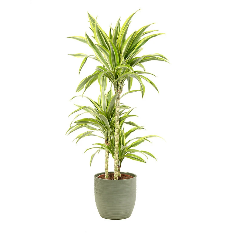 | Conseils d'entretien | Le Dracaena n'aime pas être en plein soleil mais apprécie les endroits bien éclairés où il conserve la beauté du dessin de sa feuille. N'arroser que lorsque la motte commence à se déshydrater et éviter les bains de pieds. Vaporiser de temps en temps. Au printemps et en été, ajouter de l'engrais une fois toutes les six semaines, jamais en automne et en hiver. Le Dracaena ne supporte pas le froid et la température ne doit pas tomber sous les 10 à 13°C. Bon à savoir: Le dracaena est toxique pour les enfants et les animaux domestiques. |