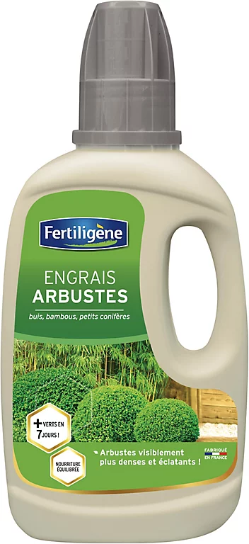 L’engrais liquide arbustes en pots Fertiligène est formulé à base de minéraux (magnésium, fer, manganèse,…) bénéfiques pour les plantes. Il est adapté à tous types d’arbustes (buis, bambous, petits conifères…) et est rapidement assimilable par les racines. ..