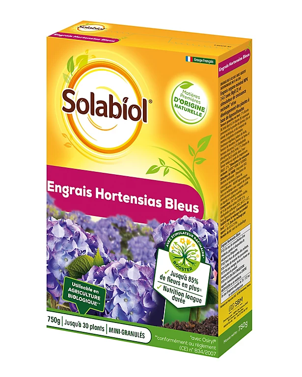 Engrais idéal pour fertiliser et entretenir les hortensias bleus.