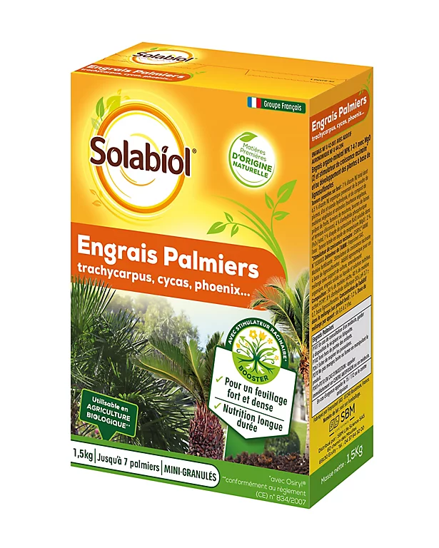 Fertilise toutes les variétés de palmiers (Trachycarpus, cycas, phoenix, butia…). Améliore le sol et nourrit durablement la plante. Contribue à l’obtention d’un feuillage bien vert.
