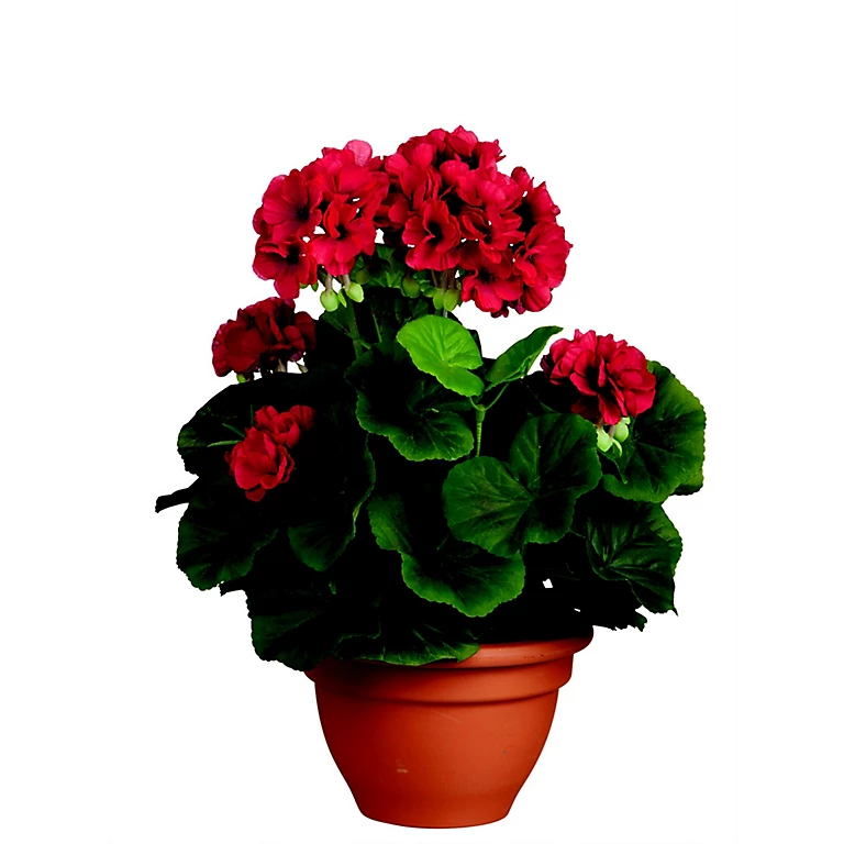 Geranium rouge artificiel ø25 x h.35 cm en pot Campana terra ø15,5 cm