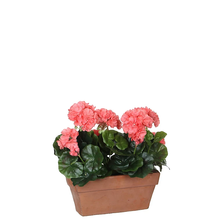 Geranium saumon articiciel en jardinière terra 29 x 13 x h.40 cm